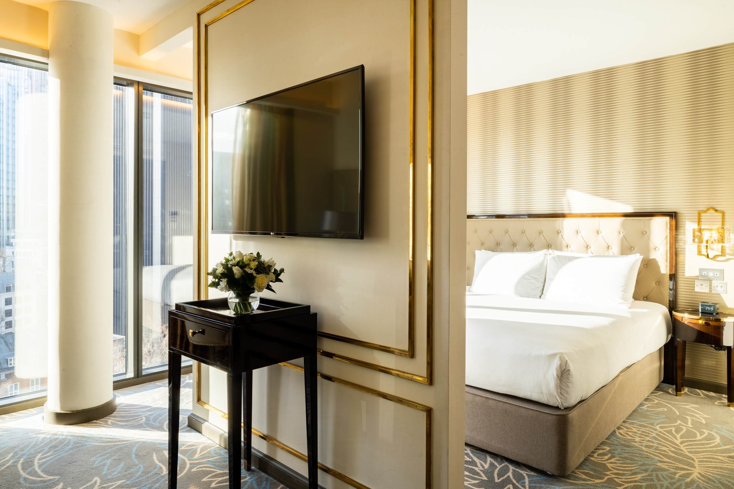 Spectacular views over the City of London’s iconic skyline, plenty of natural daylight, and a spacious and open plan layout with comfortable living room area.