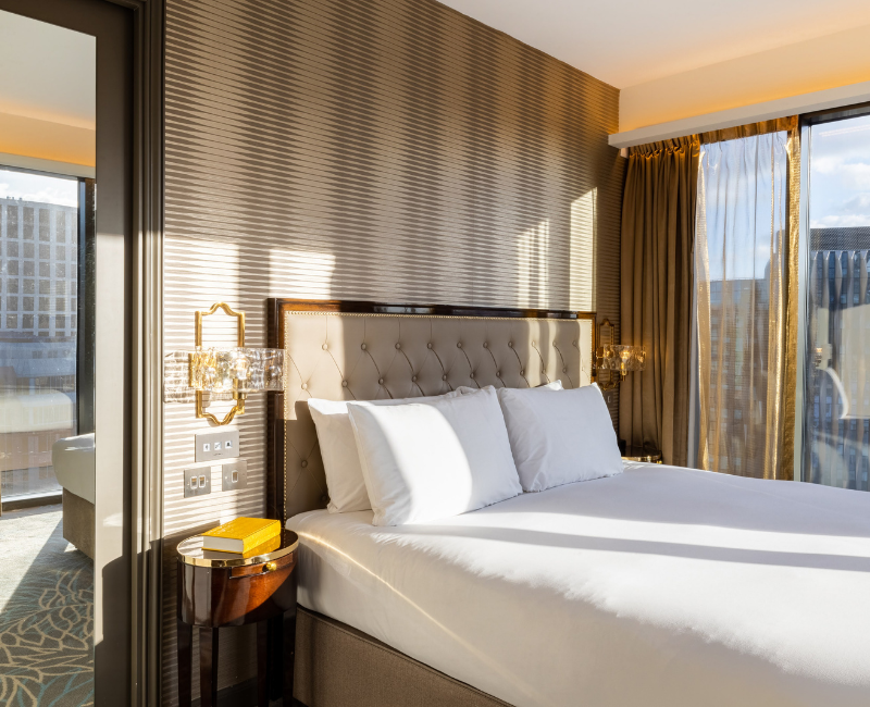 Picture this: striking double-aspect views over the City of London’s iconic skyline and historic church St. Botolph Without Aldgate, floor-to-ceiling double-glazed windows, and plenty of natural daylight. Located on the highest floor of the Hotel Saint, these bright and spacious suites feature one king-size bed as well as air-conditioning, a roomy living room with additional wide-screen TV, sofa and coffee table. Amenities include bathrobes, slippers, espresso machine, free WiFi, two 42-inch LCD TVs, hair dryer, and iron and ironing board. This lovely suite also offers a luxury bathroom with full-size bath, walk-in shower, and complimentary toiletries.